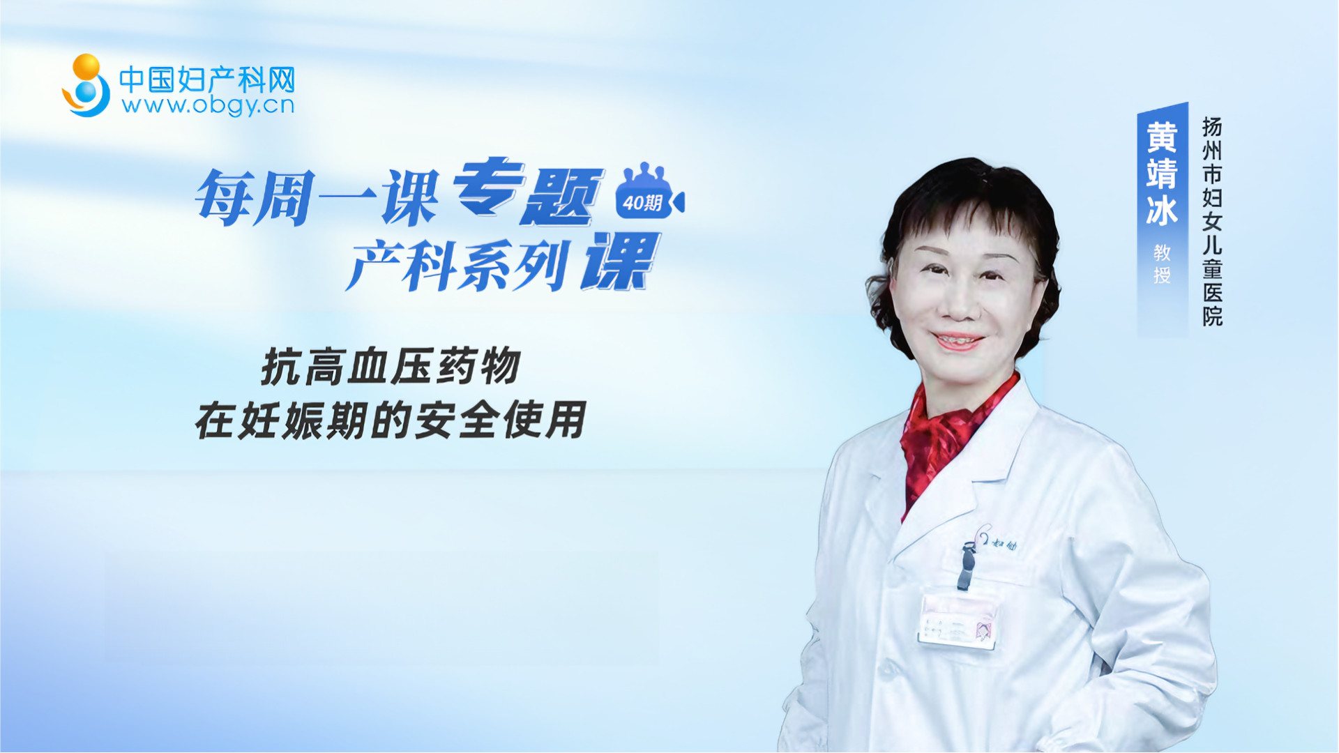 每周一课丨黄靖冰教授:抗高血压药物在妊娠期的安全使用